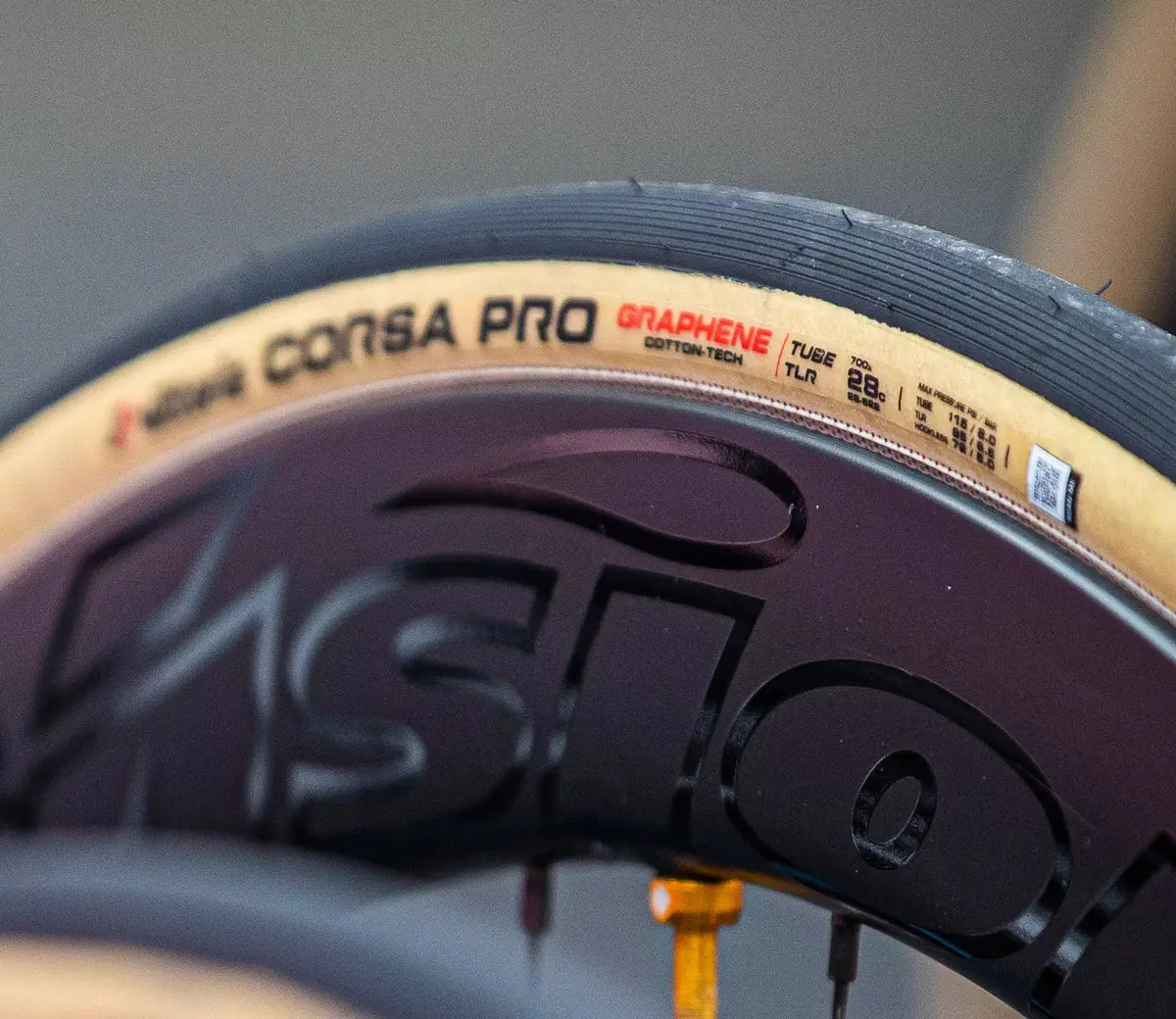 Road performance band met nylon casing en Silica + Graphene compound. Gericht op snelheid en betrouwbaarheid in dagelijkse inzet, met een treadconcept dat uit WorldTour‑ontwerp is afgeleid.