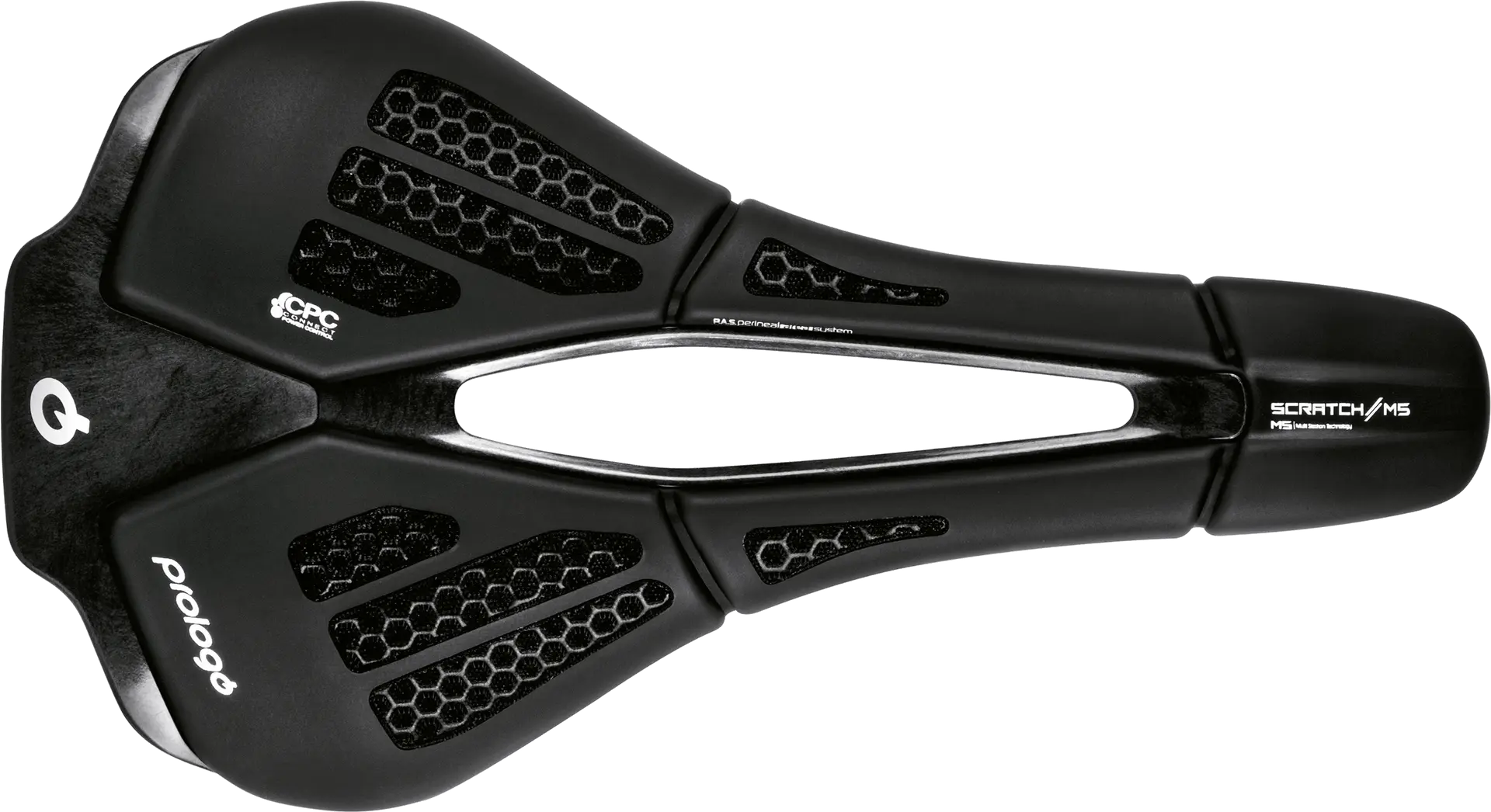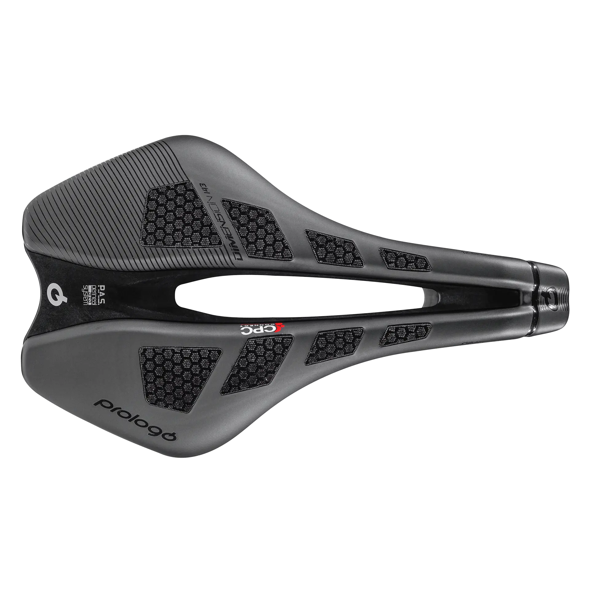 PAS‑kanaal voor drukontlasting, carbon base, keuze tussen Nack of Tirox rails. De 147‑versie voegt extra padding toe (meer aan zijkanten en bovenkant) voor comfortabelere drukverdeling.